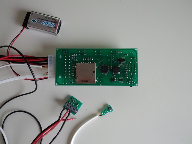 - Alimentation via une pile 9v (batterie de secours pour l'horloge : pile plate 3v). Attention, tout le montage est alimenté en 3.3v, le LCD doit également travailler en 3.3v, la majorité des LCD vendus dans le commerce n'accepte que le 5v, lisez bien les specs si vous décidez de ne pas prendre le même modèle !